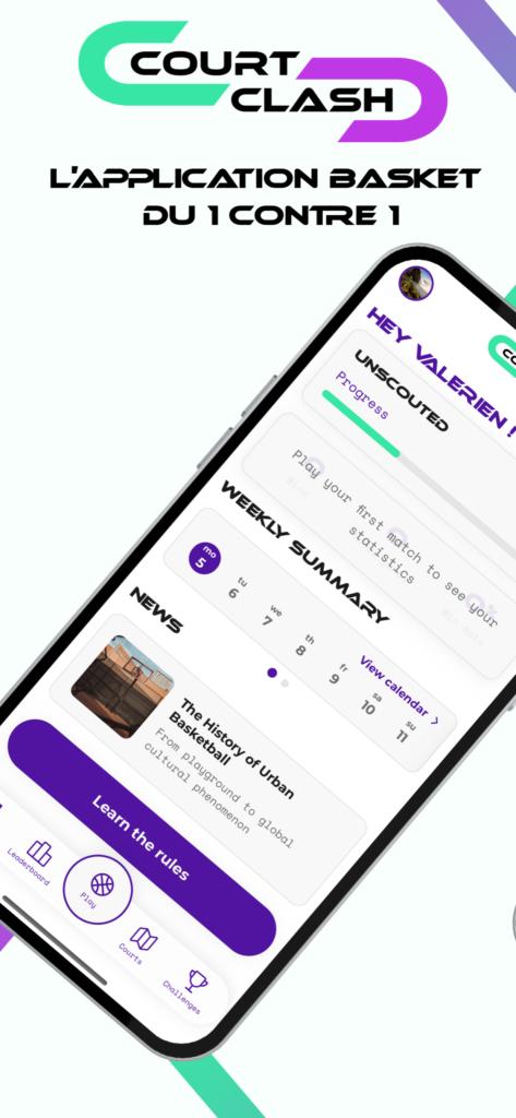 Bienvenue sur CourtClash, l’application qui transforme chaque terrain de basketball en une arène de compétition 1 contre 1.